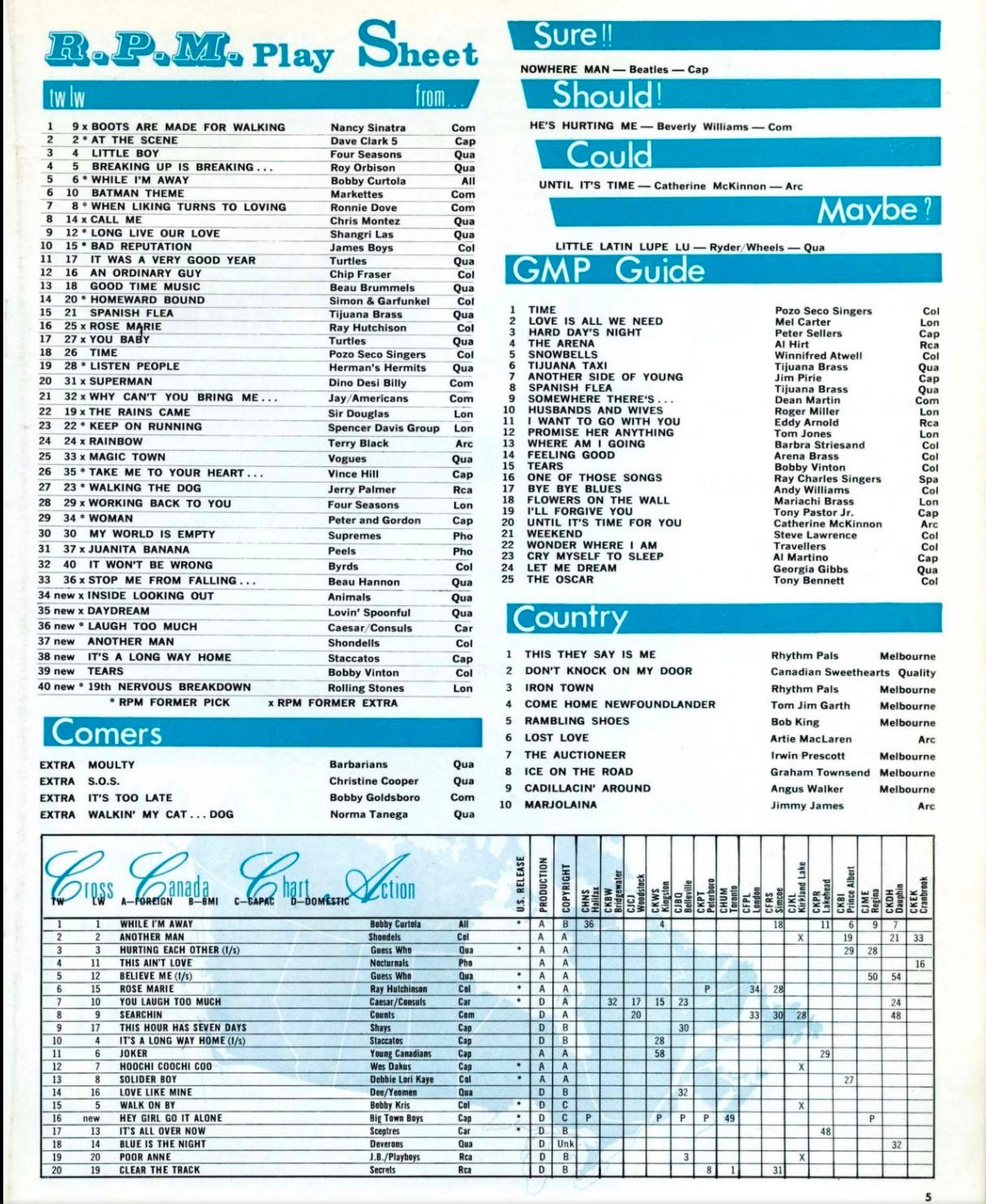 In March 1966, RPM introduced Canada’s Top Songs chart. For the first time, you could see a broad snapshot of Canada’s best-selling or most-played singles in one place. Previously the only reference point might have been the CHUM Chart in Toronto, but it didn’t really reflect the entire country.